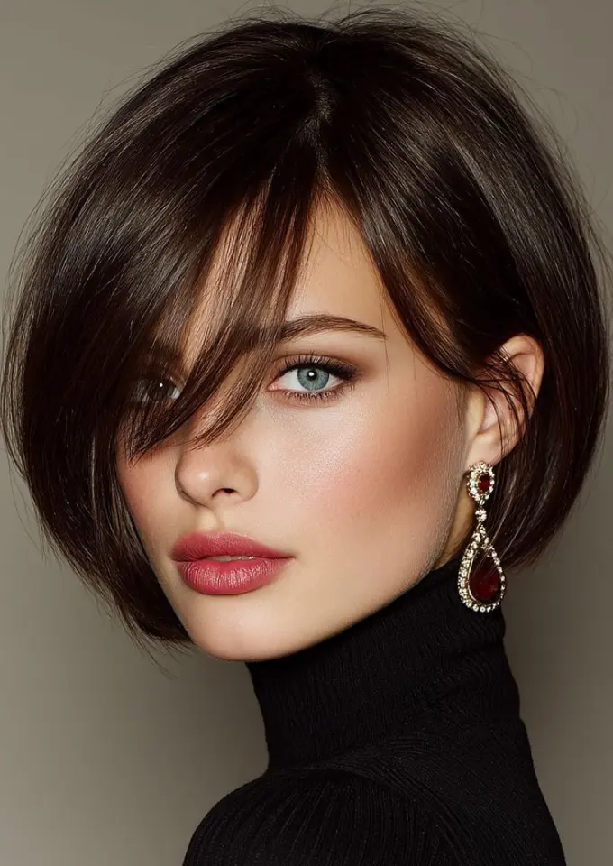 - Sleek bob with blunt edges for a sharp look.