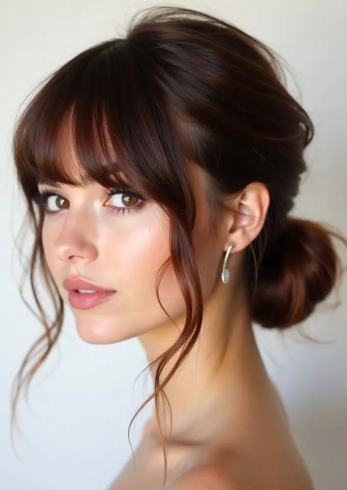 - Low Chignon: Perfect with side-swept bangs for weddings or formal dinners.