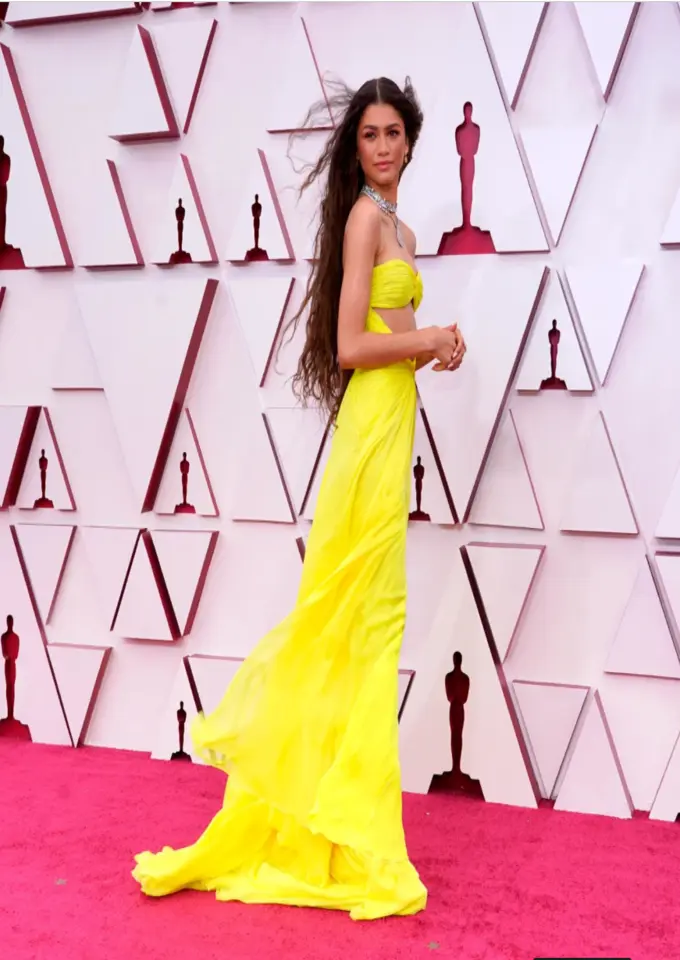 One of the major points in Zendaya fashion evolution was when she wore a yellow Valentino gown at the 2021 (Oscars) Academy Awards. Her bold choices reflect confidence and elegance. The design of this gown was modern and sleek, and it had a long train that flowed with Zendaya’s moment. She paired this dress with minimal accessories, She also curled her hair, which highlighted her natural beauty. There is no doubt that Zendaya’s choice makes her so stunning that everyone talks about her looks.