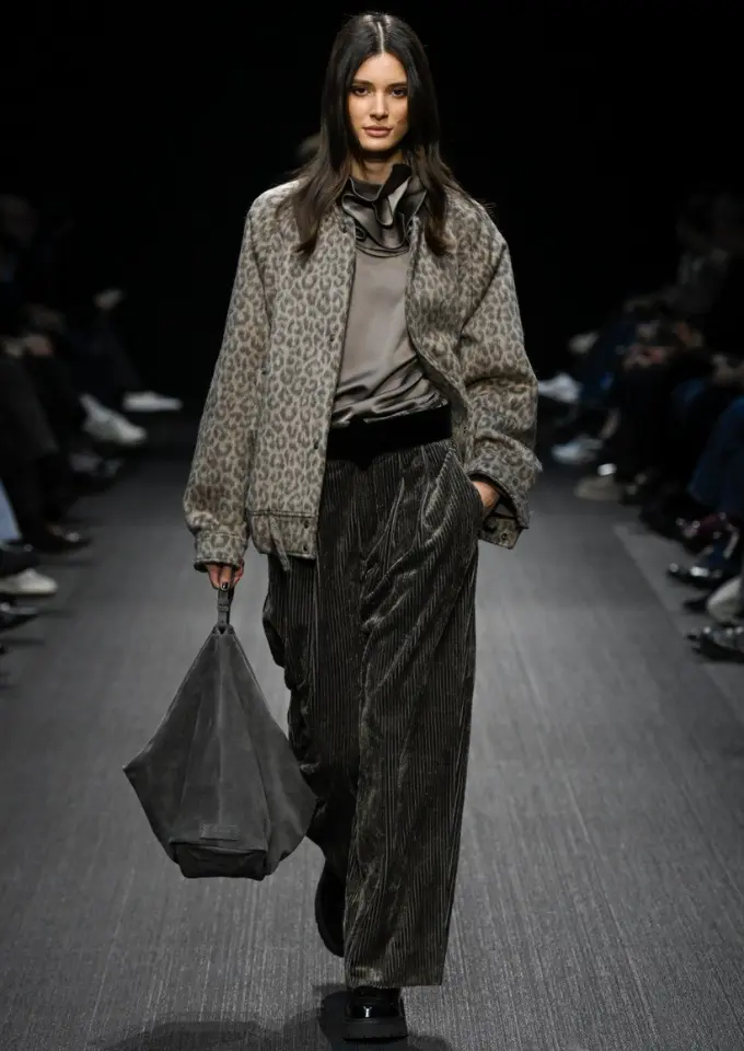 - Add a denim bomber jacket to contrast formal silhouettes.
