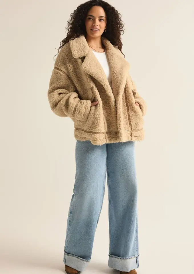 If you are heading out on a chilly evening just throw a long coat over your Sherpa sweater and add boots. This simple combo gives a modern edge to your casual outfit ideas and keeps you warm at the same time.